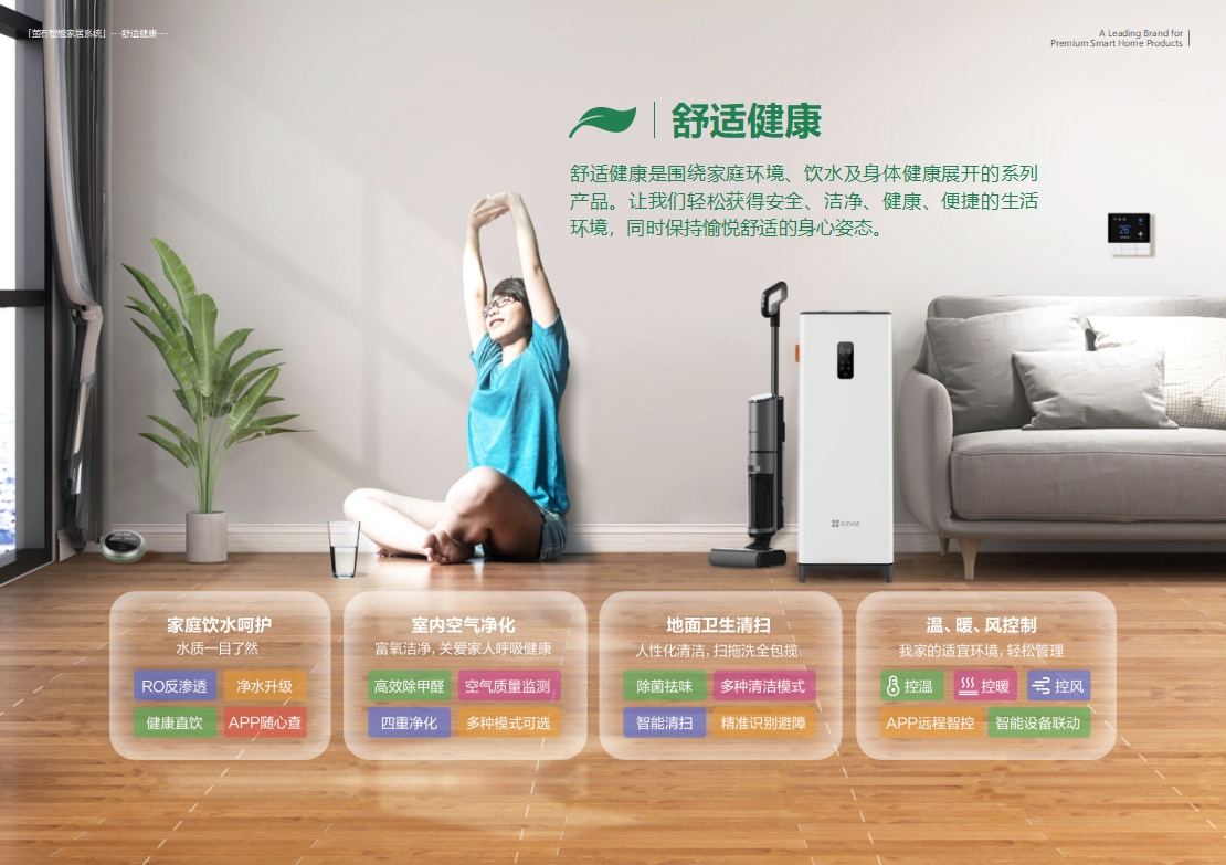 舒适健康是围绕家庭环境、饮水及身体健康展开的系列产品。让我们轻松获得安全、洁净、健康、便捷的生活环境,同时保持愉悦舒适的身心姿态。 ...